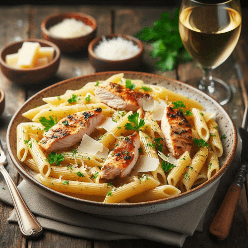 Penne carbonara met kip