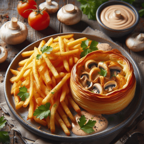 Een klassiek gerecht met een malse kippendij, geserveerd in een rijke tomatensaus met champignons, uien en kruiden